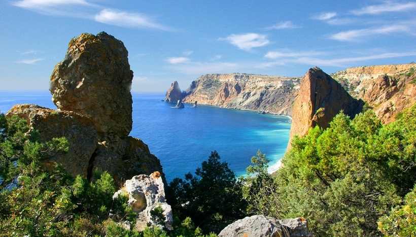 «Золотой» в Балаклаве. С одной стороны его обрамляют отвесные скалы, а с другой бескрайнее море.
