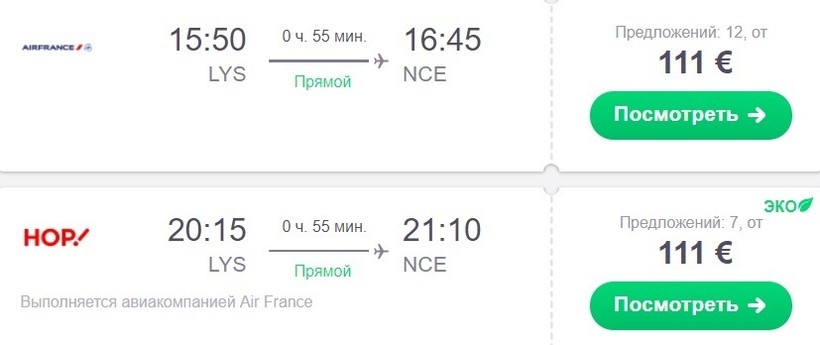 Авиабилет по маршруту Лион — Ницца стоит от 111 евро (8140 рублей).