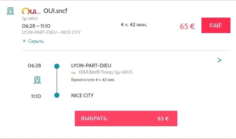 За проездной документ в Ниццу придется выложиться порядка 65 евро (4765 рублей).