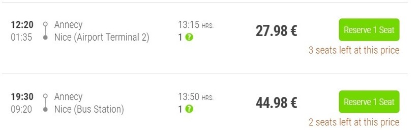Лично мне удобнее всего было путешествовать по этому маршруту на автобусе. Уехал вечером из Анси, а утром ты уже в Ницце, тем более, что это еще и бюджетный вариант, если сравнивать с остальными.