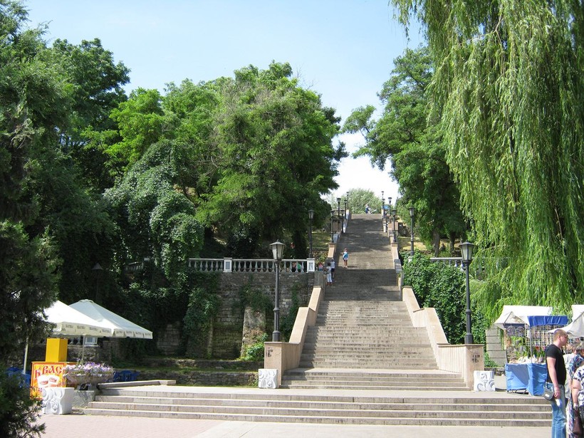 Из центра приятно спуститься по знаменитой лестнице из камня к набережной с памятником А. С. Пушкину, а потом — на пляж.