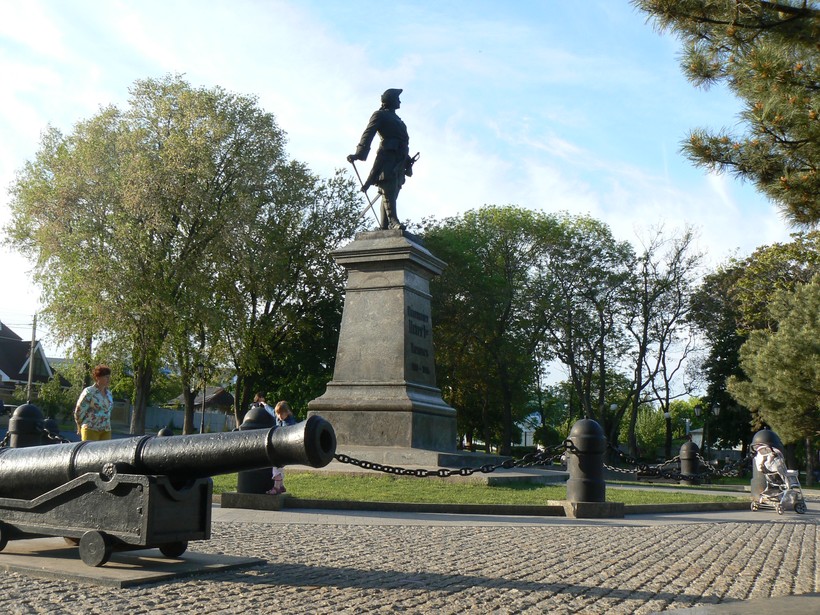 Вообще, в Таганроге большинство знаковых мест связано или с именем Чехова, который здесь родился, или Петра Первого, который город основал. Последнему поставлен внушительный такой памятник, а еще сохранилось здание старых так называемых Петровских казарм (хотя построены они уже после смерти императора).