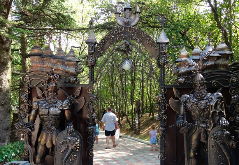 Если вы отдыхаете с детьми обязательно побывайте в музее "Поляна сказок". Это место, где собраны скульптуры известных героев сказок и мультфильмов, сделанные из дерева и камня. На входе сказочный камень, выбирайте куда идти, конечно в сказку. Есть домик на курьих ножках, там живет Баба Яга, которая для небольших групп детей дает небольшие представления. Многие скульптуры собраны в целые композиции, девочка Элли с друзьями идет к Гудвину, забавные три поросенка с волком. Здесь будет интересно не только детям, но и взрослым. Я с удовольствием окунулась в мир сказок. Есть где перекусить и отдохнуть.
