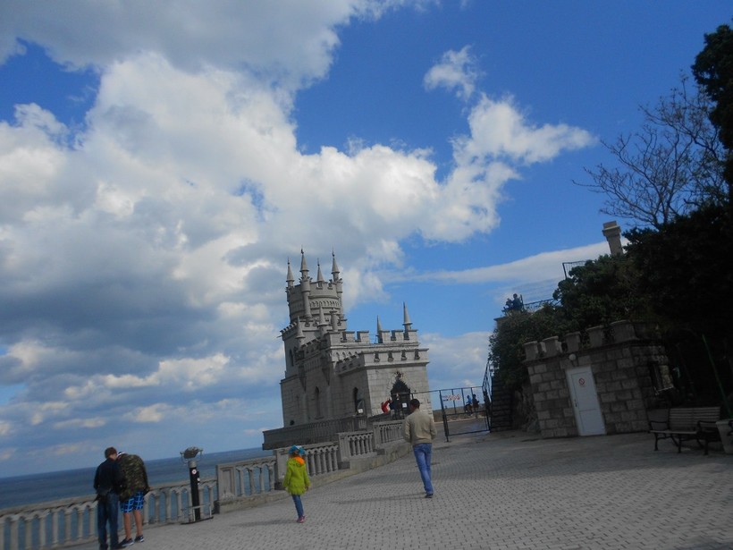 У гостиницы, где мы располагались, постоянно ходили экскурсоводы, которые так и хотели заманить кого-то в музей или на просмотр исторического памятника. Историей я не увлекаюсь, поэтому развлекательную программу мы с мужем строили самостоятельно по данным из интернета. В общем, устроили себе активный отдых. Ближайшее место, которое есть практически на каждой фотографии туристов, что побывали в Ялте - это Ласточкино гнездо. Сфотографировались возле него в разных ракурсах и последовали дальше. Далее мы посетили: