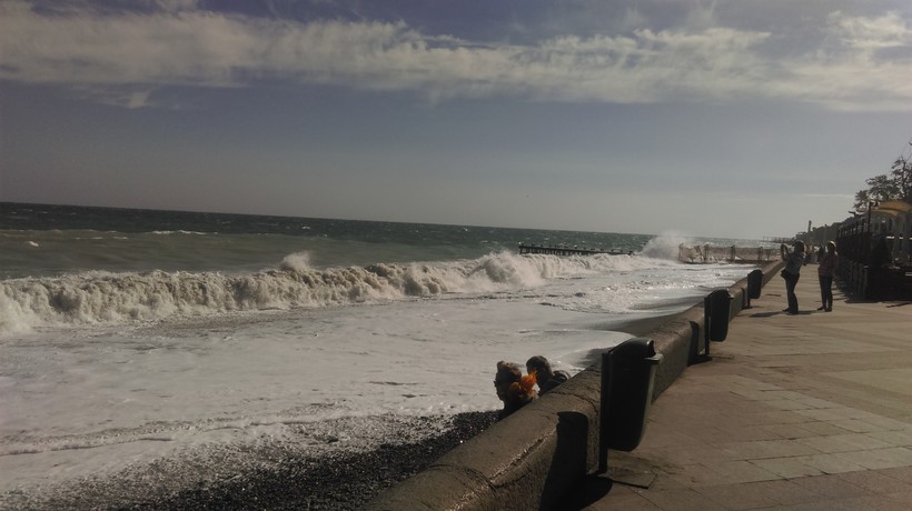 - в Ялте есть Массандровский пляж. Мне лично ни разу не удалось искупаться в Ялте -потому что обычно мы приезжаем в Крым в конце сезона, в сентябре, и в Ялте прохладно, к тому же это исключительно городской пляж. Мы предпочитаем более дикие места для пляжного отдыха. Но с Массандровского пляжа -великолепный вид. И в ясную погоду и особенно - в шторм.
