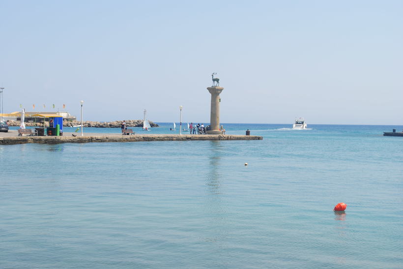 Когда-то здесь было одно из Чудес света. Древняя гавань, которая являлась главным портом Родоса на протяжении почти трех тысяч лет. На входе в порт расположены две каменные колонны, на которые в третьем веке опиралась гигантская тридцати шестиметровая статуя Колосса Родосского. А сейчас там располагаются фигуры очаровательных оленей, с которыми любят фотографироваться туристы. На каменном волнорезе находятся три средневековые мельницы, сохранившиеся с рыцарских времен, и крепость Святого Николая.