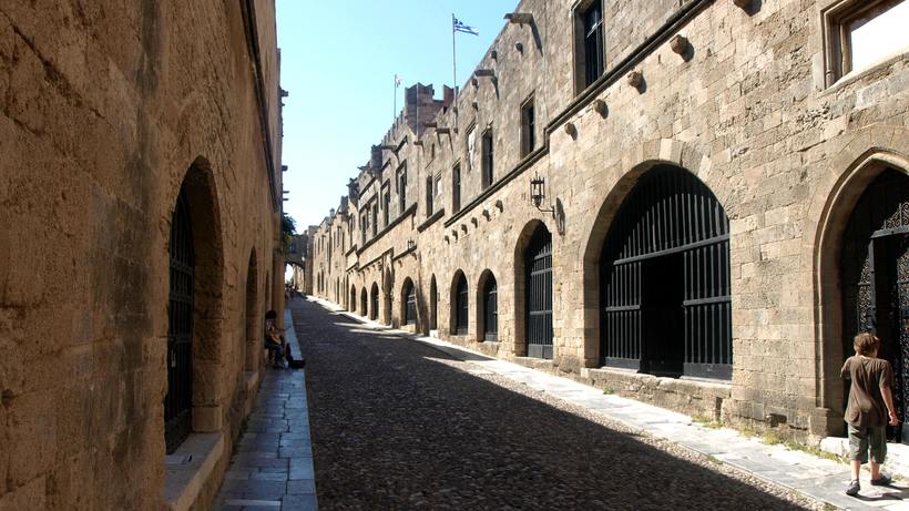 Здесь же находится улица рыцарей: начинается у ворот Дворца великих магистров. Когда-то здесь был Дом французских рыцарей и Дом Испании.