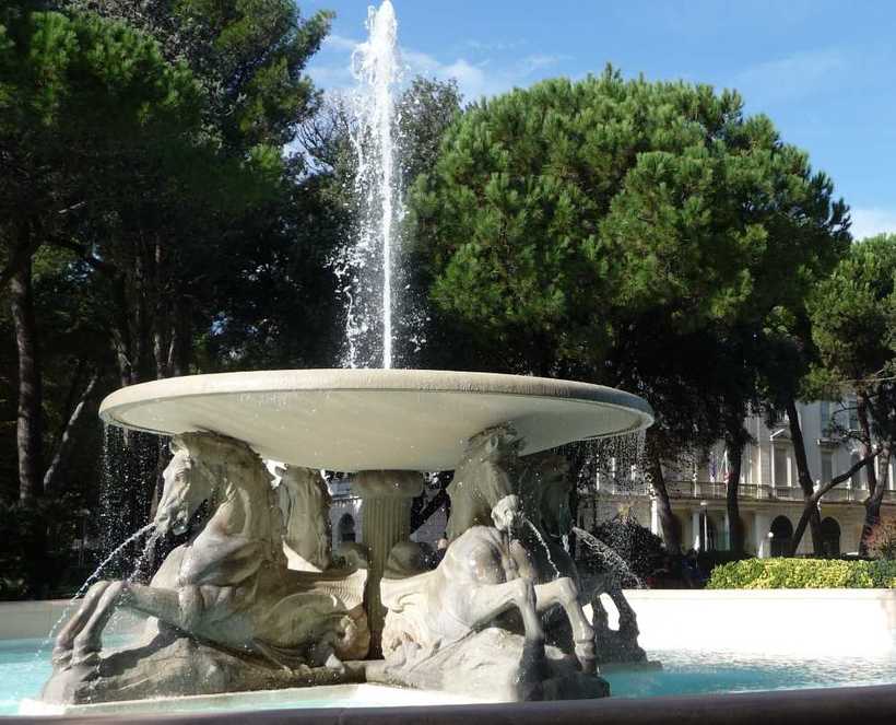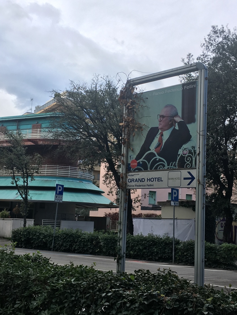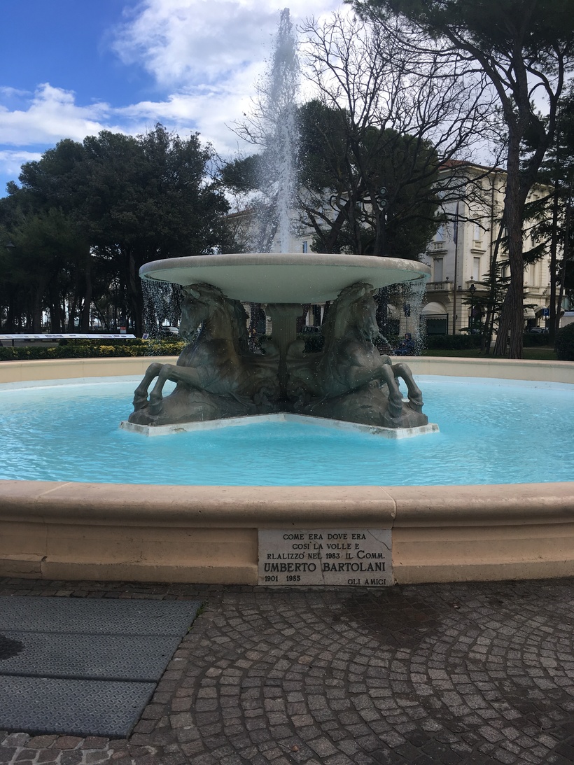 Первый пункт программы недалеко от моря – парк в честь известного режиссера, родившегося в Римини. В одном из кинофильмов Федерико Феллини…Да, Гранд Отель в 3 минутах ходьбы от парка. Сам парк мне очень понравился, хоть он и совсем крохотный. Фонтан с 4 конями и лавочки в виде лодок смотрятся симпатично.