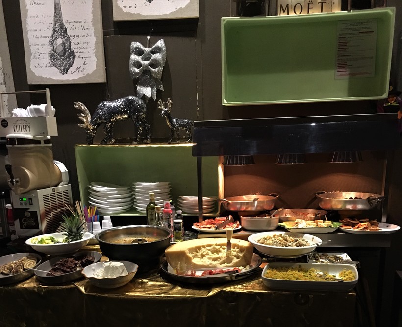 - Ну и, наконец, это время аперитивов в Италии. В определенное время все места общепита выносят на стол всевозможные закуски, горячие блюда, сыр, салаты, сладости, фрукты…ну вот прям всё. А ты покупаешь любой напиток и делаешь неограниченное количество подходов к этому столу. Каждый ресторан предлагает свои блюда – где-то это может быть просто легкая закуска, типа пиццы и брускет, а где-то могут поставить даже несколько видов супа или огромный круг пармезана, от которого можно отламывать любое количество сыра. Из минусов - во всей Италии существует негласное правило времени принятия пищи. То есть, до обеда или после ужина у тебя фактически нет возможности поесть, поскольку рестораны прекращают обслуживание. В выходные график подачи блюд меняется и на аперитив можно попасть даже в дневное время суток. В общем, тут нужно уточнять и успеть вовремя. Примерное время аперитивов в будни – около 7-8 вечера.