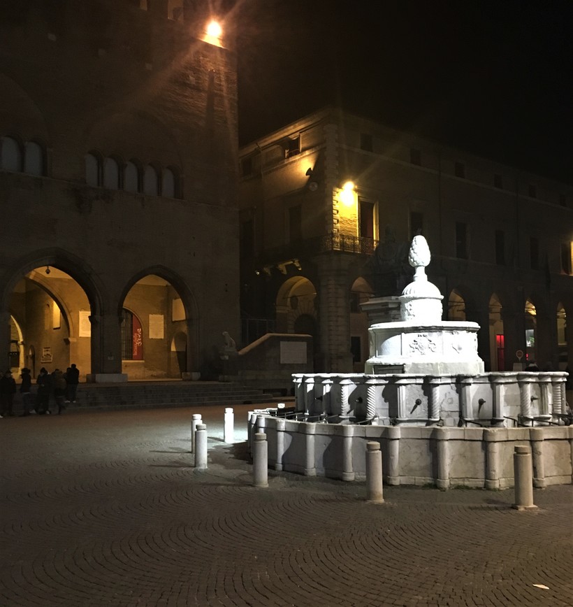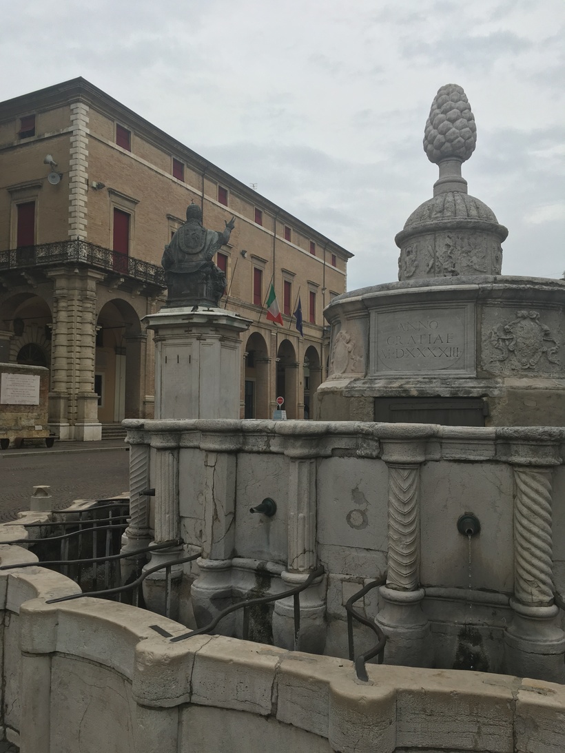 Если идти по мосту в направлении арки Августа, то можно «зацепить» по дороге все самые значимые достопримечательности города. На мой взгляд, самое итальянское место в городе – это площадь Кавур. Самый центр города с красивыми историческими зданиями, статуей Павла V и фонтаном в центре площади с каким-то артишоком или шишкой посередине (ну реально очень похоже). Самое интересное, что днем и вечером площадь имеет абсолютно противоположную атмосферу. То, что днем изобилует историей и мощью, вечером и ночью кажется декорацией к нереально шумным тусовкам в округе. Здесь же, на самой площади расположено милое кафе с аперитивами.