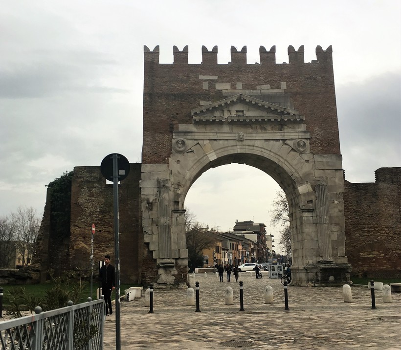 Ну и продолжая путь по улице с многочисленными кафе и магазинами, можно увидеть перед собой бывшие ворота в город (Арка Августа), которые теперь оказалась в самом центре города. К слову, это одна из немногочисленных арок в Италии, сохранившаяся с тех самых времен.