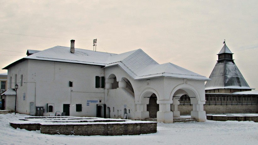 - Допетровская гражданская архитектура. Это, в первую очередь, Поганкины палаты, названные так по фамилии их строителя и первого владельца, купца Поганкина, а также Приказные палаты в Довмонтовом городе. Пожалуй, эти здания не отличаются особенными архитектурными изысками, но для XVII это нормально. А зданий таких сохранилось по России очень мало, так что обделить их вниманием попросту неправильно.