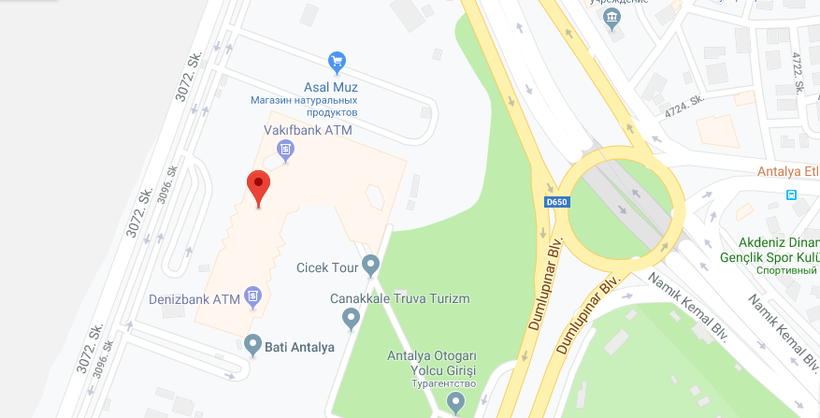 Отправляются автобусы от автовокзала в северной части Антальи, это на улице Yeni Doğan Mahallesi.