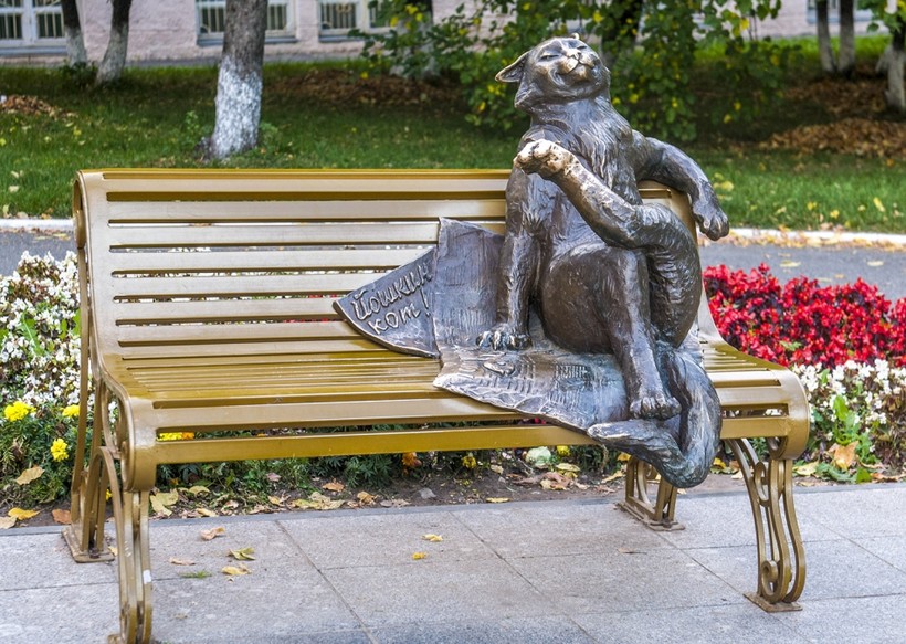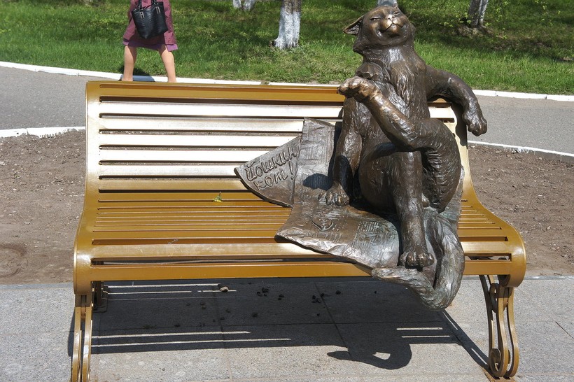 Недалеко находится Йошкин кот. Очень забавный металлический питомец сидит на скамейке, а еще подальше – Йошкина кошка, его подруга. Тоже симпатяга.