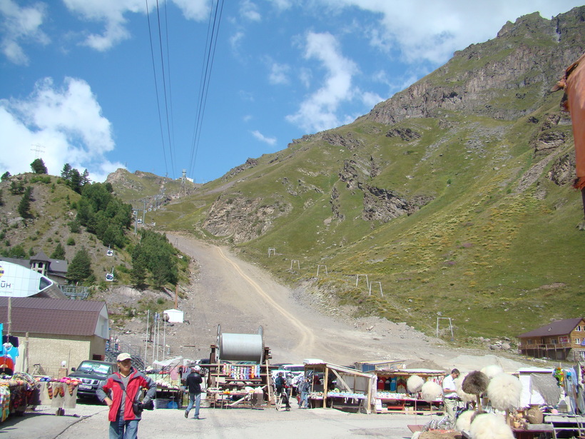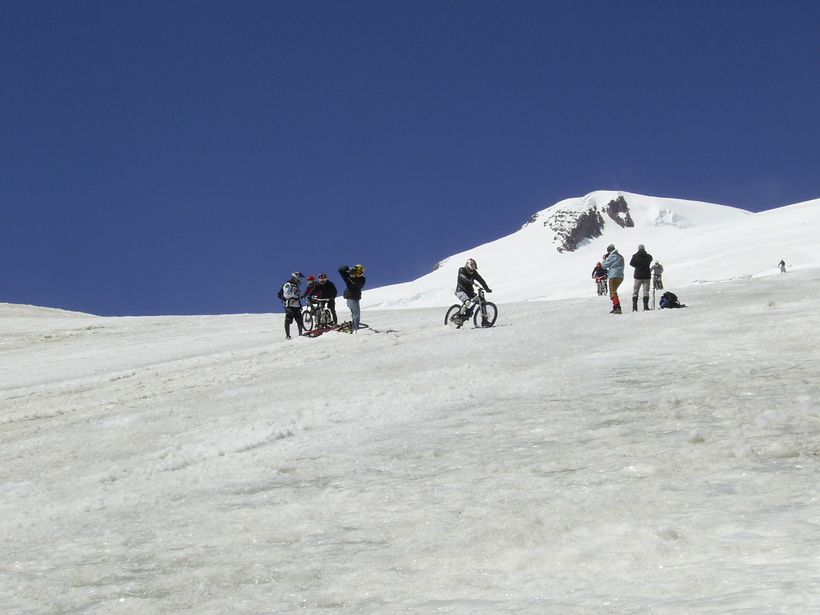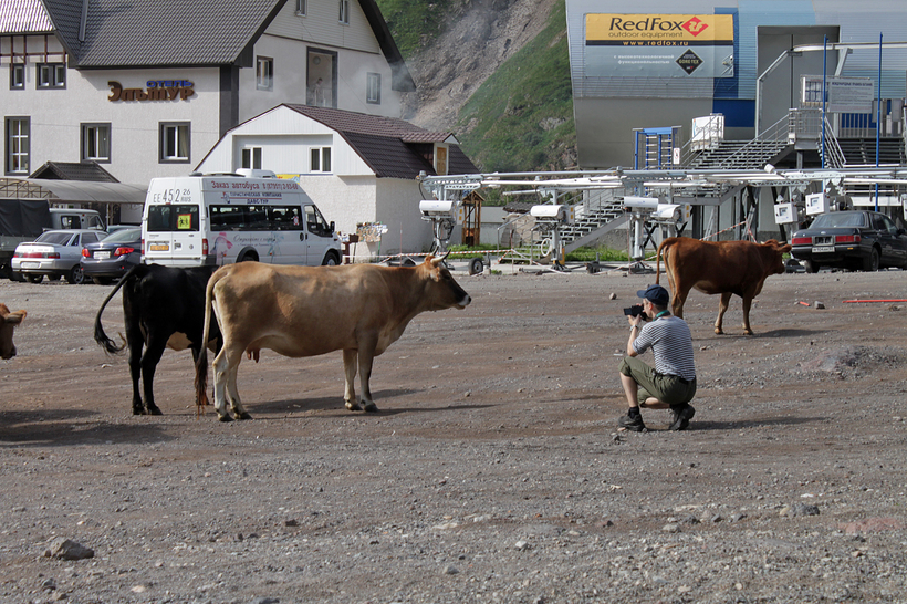 Приехать сюда можно в любое время года. Народа здесь очень много, независимо от сезона. Зимой к вашим услугам трассы разной степени сложности. Ну а летом здесь находится точка сбора многочисленных альпинистов, любителей треккинга, и просто туристов, которые приезжают полюбоваться на сверкающую громаду Эльбруса. Кстати, летом на склонах Эльбруса тоже можно кататься. Надо только подняться повыше. Во всяком случае, даже в августе я видел довольно много сноубодистов на склоне выше последней очереди канатной дороги. Порой, можно увидеть даже такое: