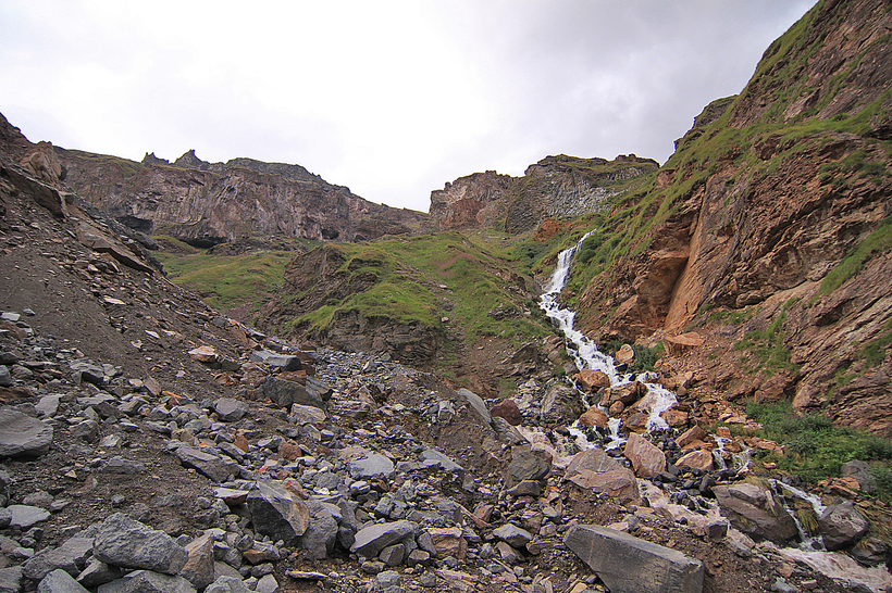 Внизу, в окрестностях Азау тоже есть, что посмотреть. Лавовые трубы, водопад Девичьи косы, входящий в сотню красивейших водопадов в мире, и еще несколько водопадов, названий которых я не знаю. Любителям треккинга точно найдется, на что потратить пару дней.