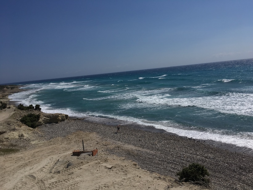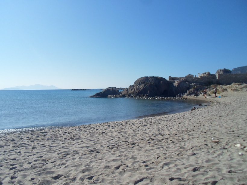 Островок встречал нас теплой солнечной погодой. Автобус катил среди густой растительности, которая плавно переходила в степи и равнины с выжженной травой. А вот и наш отель. Оказалось, что мы достаточно удаленно находимся от столицы Кос. И что нас больше всего удивило – вокруг ни магазинов, ни аптек, ни-че-го. Просто поле с пасущимися на нем коровками и лошадиная ферма. Вот тут мы уже призадумались, что же делать дальше. Транспорт не ходит, даже автобусной остановки нет. Плотно позавтракав, мы рванули к морю. Лазурная водичка оказалась в 10 минутах ходьбы от нашего отеля. Мы выдохнули. Ну, хоть море рядом! Береговая линия тянулась на много километров в обе стороны и главное, вокруг – кроме нас - еще несколько человек. Ну, совсем дикий пляж. Светло-серый песочек и ласковое море с теплой водичкой нас порадовали. По прогнозам вода в море достигала 19 градусов, но по ощущениям, она была на несколько градусов выше. Я бы сказала, что не меньше 23 градусов.