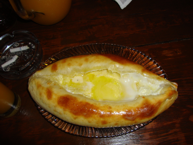 Обычно мы купались до обеда, а потом шли на перекус в ближайшее кафе. Какие же там вкусные хачапури. Они сделаны в форме лодочки. В середине лодочки плавает расплавленный сыр и яйцо. Нужно отламывать кусочек от лодочки, а потом макать в серединку. Будет очень вкусно. С удовольствием бы сейчас отведала это блюдо.