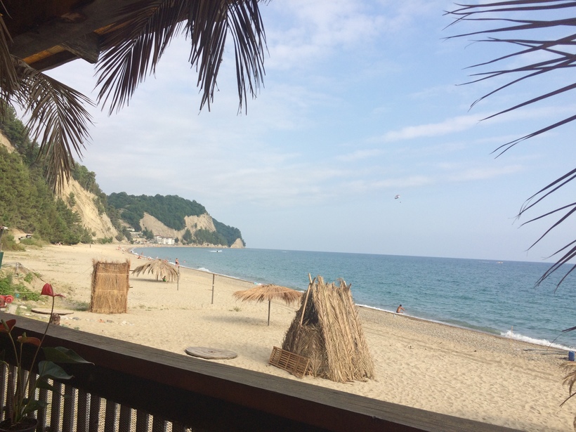 - единственный во всей Абхазии песчаный пляж, что не маловажно для поездки с детьми, да и вообще там лучшие пляжи Абхазии;