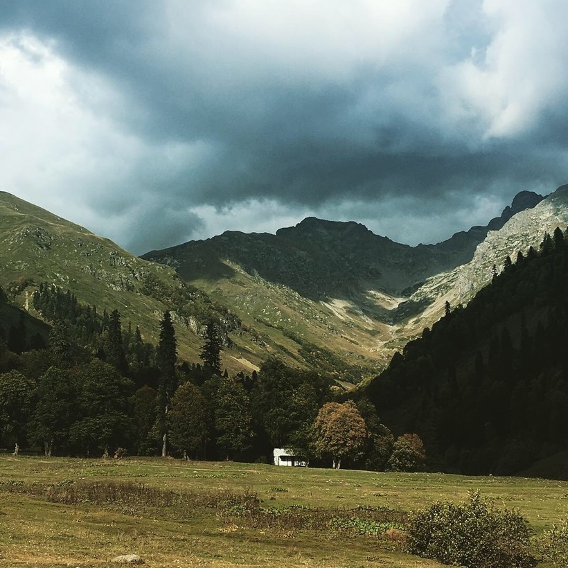 Впервые в этом году мы побывали на Альпийских лугах, расположенных за озером Рица. Место оказалось необыкновенно романтичным. На лужайках проросли крокусы, в долине гуляли лошадки в окружении живописных гор.