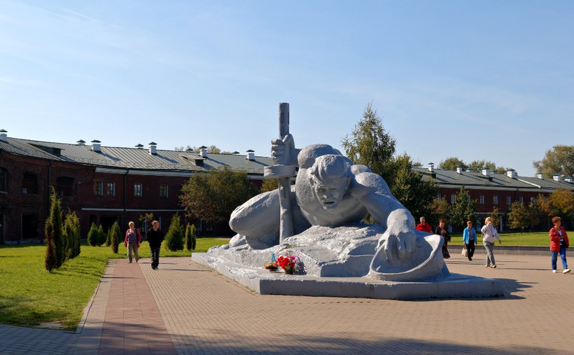 Этот памятник просто способен разорвать душу и заставить разрыдаться даже самого сурового человека, я плакала безостановочно, пока находилась рядом. Монумент изображает человека, который, кажется, уже растратил последние силы на оборону. К тому же, фашисты, после нападения на Брестскую крепость, в первую очередь перекрыли доступ питьевой воды людям, защищавшим ее, поэтому солдат невероятно хочет пить. Но вода нужна для того, чтоб остужать раскаленные пулеметы, тратить ее на утоление жажды никто не смел. Многие воины встретили смерть, пытаясь раздобыть воду, именно им и посвящен этот душераздирающий памятник, прославляющий мужество и самоотверженность.