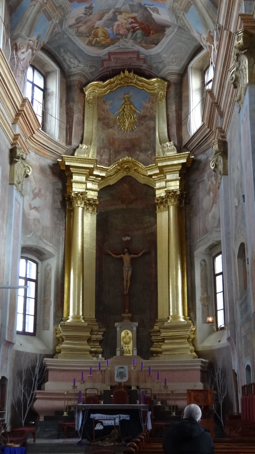 - Костел Святого Станислава. Монументальное сооружение XVIII века, которое сейчас не выходит ни на какую из улиц, а стоит во дворе за домами, что само по себе необычно. Костел действующий и очень богато расписан внутри.