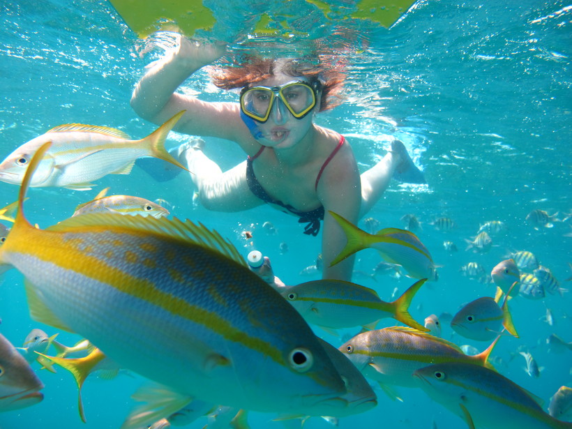 Из развлечений помимо еды прямо на пляже здесь предлагают прокатиться на парусной лодочке и там же поплавать с рыбками, даже маски и трубки выдают. Все удовольствие 25 cuc, но можно слегка сторговаться. В итоге нам понравилось, мы приятно покатались под парусом и за дополнительные 10 cuc местный фотограф даже сделал нам подводные фото с рыбами.