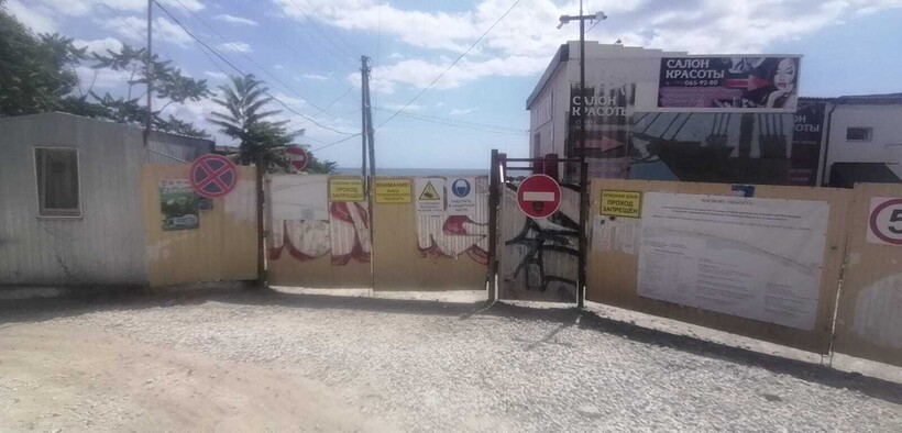 на фото береговая зона. везде стоят ворота- проход запрещён, когда идёшь впервые , то на верху посёлка(в центре) стоят указатели-проход к морю, а потом натыкаешься на такие ворота, и так по вему посёлку