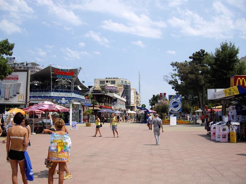 Отдых с детьми, на мой взгляд, на этом курорте категорически запрещён, хоть люди и едут с детьми, но я бы никогда в такое место не отправилась с ребёнком. Потому что Солнечный берег это шумные вечеринки до утра, множество баров и клубов с недорогой выпивкой и пьяная молодёжь.