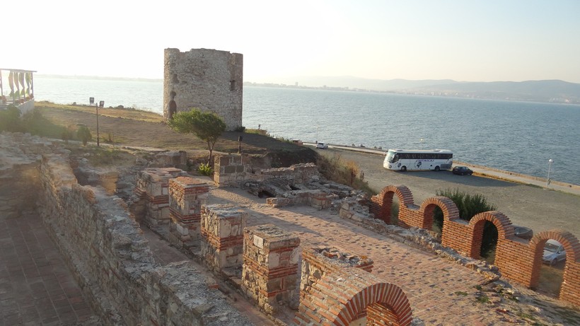 - Близость к старому Несебру. По моему мнению, это главная достопримечательность болгарского побережья и одна из визитных карточек Болгарии в целом. Туристов там, конечно, толпы, но в таких атмосферных местах на них как-то уже не обращаешь внимания. Старый Несебр представляет собой полуостров, застроенный живописными домами эпохи Болгарского Возрождения, которые характерны тем, что верхние этажи нависают над нижними. Кроме того, в старом Несебре сохранились памятники времен Византии и Второго Болгарского Царства, выполненные с использованием римской кладки opus mixtum, предполагающей чередование известняковых блоков и красных кирпичей. Из Солнечного Берега к старому Несебру 3-4 раза в час ходят автобусы (цена билета 1,6 лева), 1-2 раза в час — туристический паровозик (3 лева), а из порта туда 1-2 раза в час отходят катера, но это уже на любителя.