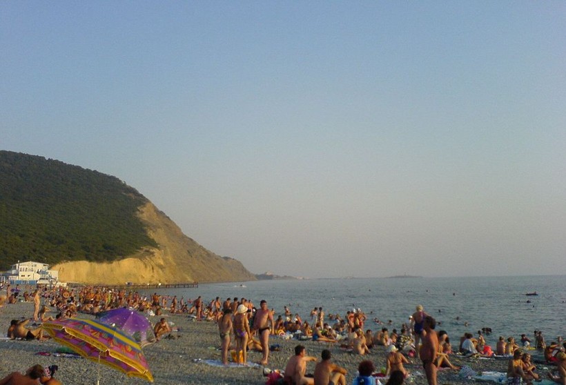 Вид на Сукко - Пляж. Мелкая галька позволяет отдыхающим без всякого дискомфорта передвигаться и заходить в воду. Единственное, что может заставить обуться в сланцы это раскаленные на солнце камушки. Чистота пляжей тоже была заметна. Нам ни разу не приходилось отправляться на поиски мусорных урн. Все они были расположены в достаточном количестве на комфортных расстояниях от зон отдыха людей.