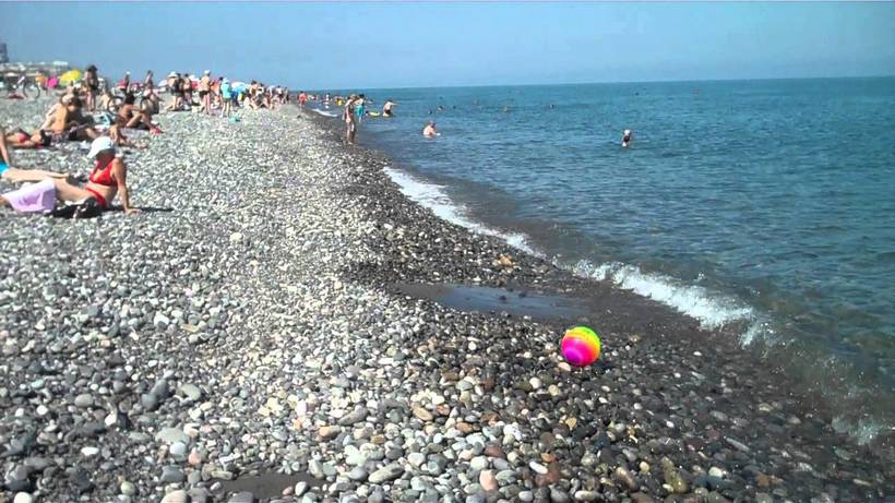 - Пляж покрыт галькой, многие покупают специальную обувь.