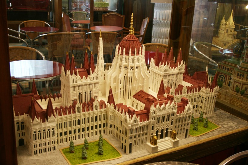 После бутербродов возжаждалось культурного. Оказывается, рядом с Рыбацким бастионом живет и здравствует небольшой музей марципана. Мы что-то уплатили за вход и зашли, полюбовались на то, что можно из марципанов сотворить, и, конечно, прикупили несколько вкусных сувениров. Особенно порадовали такие объекты в музее, как марципановый парламент, совершенно дивные ажурные тортики и императрица Элизабет в полный рост. Марципановая императрица. Теперь вы тоже знаете, что и такое на свете бывает.