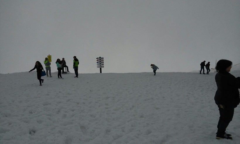 С каждой остановкой, с каждым уровнем я все больше восхищалась красотой гор и мощности стихии. Казалось бы, только пару часов назад я была в жарком Сочи, а сейчас готова натянуть пуховик. На самом верху, на Розе Пик, меня застала небольшая снежная буря и туман. Это было и одновременно красиво, и страшно.