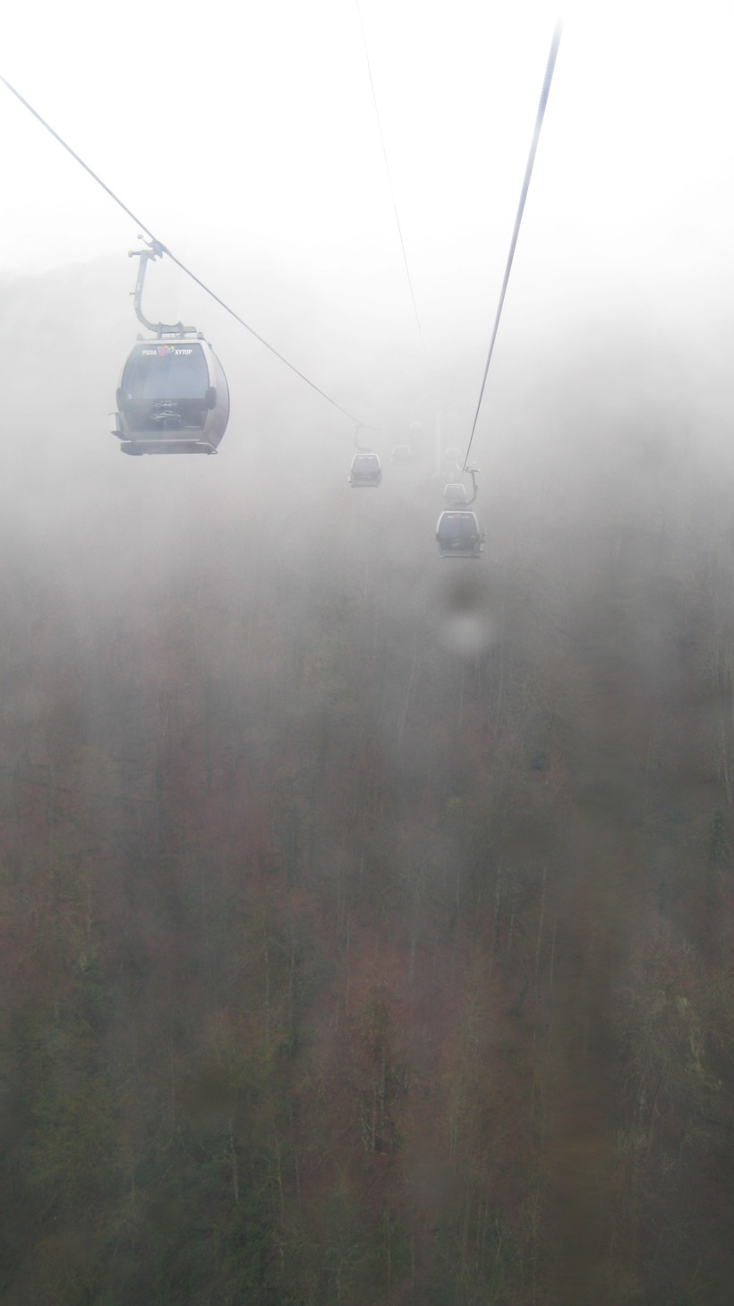 К нашему большому сожалению нам не повезло с погодой. Был дождь и очень сильный туман. Дождь это полбеды, а вот туман здесь это конечно катастрофа. Все наши мечты о красивых видах и фотках были разбиты в пух и прах. Но все таки мы решились прокатиться по канатке до первой остановки и посмотреть как все таки там, на ГОРЕ. Тем более были в нашей компании люди, которые этого никогда не видели.Ну и чем черт не шутит, вдруг распогодится.