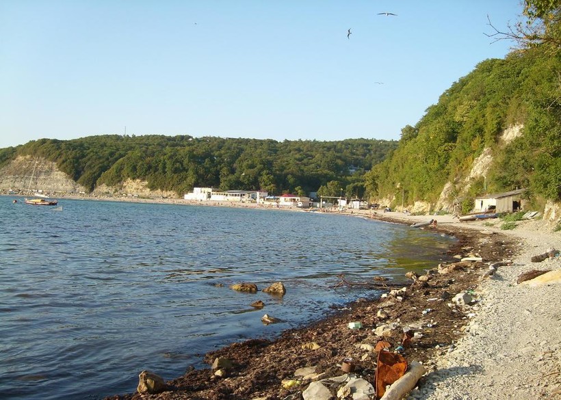 Очень чистое. Особенно по сравнению с Анапой, где на пляже бывает просто куча водорослей. Причина такой чистоты, я думаю, в небольшом количестве людей и каменном пляже. Обычно там, где есть песок, вода более мутная.