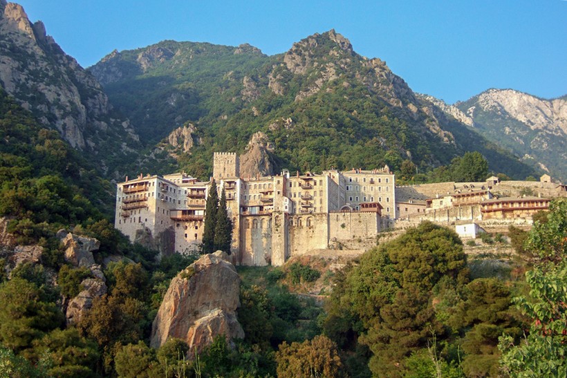 Перед тем как начать рассказ о своем посещении греческого Афона, хотелось бы уточнить, что Афон это монашеское государство на территории Греции, живущее по своим законам (например, на территорию Афона запрещен вход женщинам). Население Афона – монахи, живущие в двадцати монастырях и многочисленных скитах, разбросанных на довольно обширной территории. Высшая точка Афона – гора Афон, высотой чуть более двух километров.