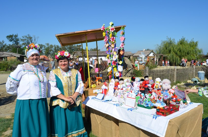 Место здесь очень красивое, бескрайняя полоса широких пляжей, с хорошим заходом в море, чистая и прозрачная вода. В окрестностях разбросаны грязевые вулканы, грязь которых считается лечебной. Самое удивительное в Тамани - трепетное отношение к культуре, здесь всячески поддерживают традиции и обряды. Этнографический комплекс "Атамань" - самое интересное и незабываемое место. Здесь можно увидеть предметы быта, оружие, различные документы. На территории, очень часто проводятся фестивали. Нам очень повезло, 15 июля проходил фестиваль "Атамань свадебная". Все началось с парада молодоженов, которые проходили со сватами. Возле домов станицы, и на главной сцене воссоздавали традиционные свадебные обряды. Я даже не думала, что сватовство, такой интересный обряд, обряжение и выкуп невесты, даже приглашение гостей на свадьбу - на все есть свой ритуал. Вокруг звучала музыка, выступали фольклорные коллективы, игры и веселье. На площади "Станичный майдан" проводили ярмарку, различные поделки ручной работы, ткацкие ковры, вышитые картины. Просто глаза разбегались. Проводили мастер-классы, я с помощью наставницы, тети Лены, смастерила милую куклу-мотанку "Кубышка-Травница", это оберег здоровья для всей семьи.