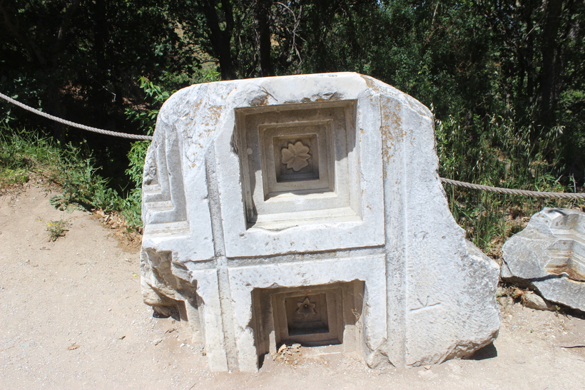 На территории города сохранилась интересная пещера, внутри которой ранее протекал пресноводный источник, по-видимому, впадавший в воды Эгейского моря. Сейчас пещера закрыта для посторонних, но осмотреть со стороны ее можно. Рядом располагаются дома местных жителей и узенькие улочки. Понять это можно только по таблицам с картинками их предположительного вида в древности. На той же территории имеется ритуальный комплекс, от него осталось чуть побольше, чем окантовка фундамента. Ранее такие комплексы являлись как местом поклонения богам, так и местом для обучения.
