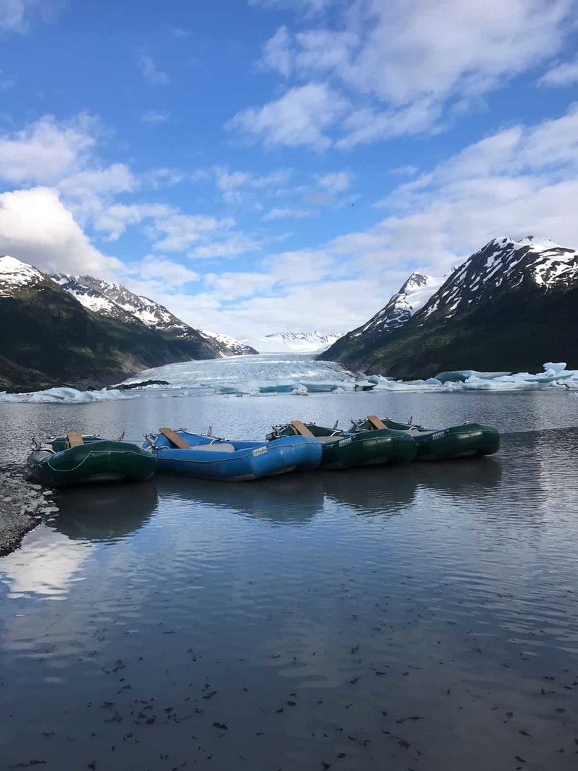 Утром мы выехали в Портэдж, город находится в 385 км от Анкориджа. Приехали мы сюда чтобы посмотреть на озеро Спенсер, оно очень красивое! На его поверхности плавают осколки ледника. На озере можно взять байдарку или лодку, чтобы поплавать по озеру между льдинками, но я боюсь воды и не умею плавать, поэтому посмотрела на озеро только с берега. А вот мои попутчики не испугались и были в восторге.