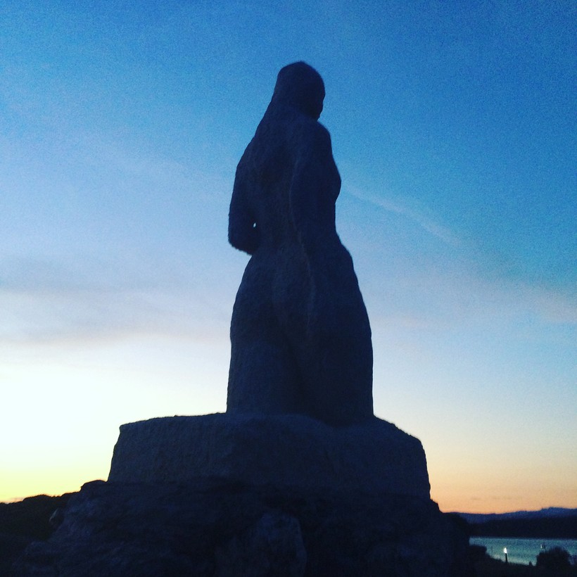 Мне понравилась скульптура, которая называется «Странник». Стоит она прямо на побережье. И представляет собой фигуру мужчины, который смотрит на море. Первый раз я видела фигуру, которая сделана из металлической сетки. Если хотите почувствовать себя частью этого «мужчины», то можно залезть внутрь. Она необычно смотрится ночью, когда включается подсветка.