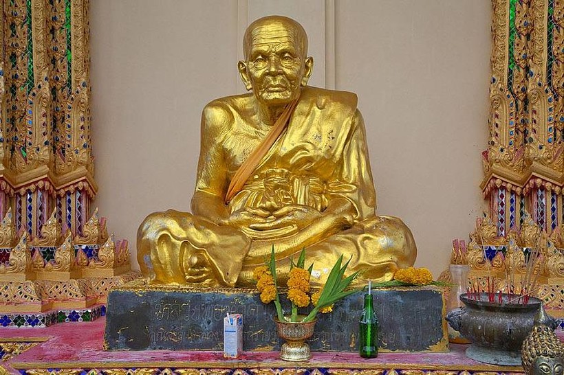 Рядом с Ват Плай Лаем находится Большой Будда. Чтобы к нему подняться, нужно купить еду и положить возле статуи. Так сказать, в гости не с пустыми руками.