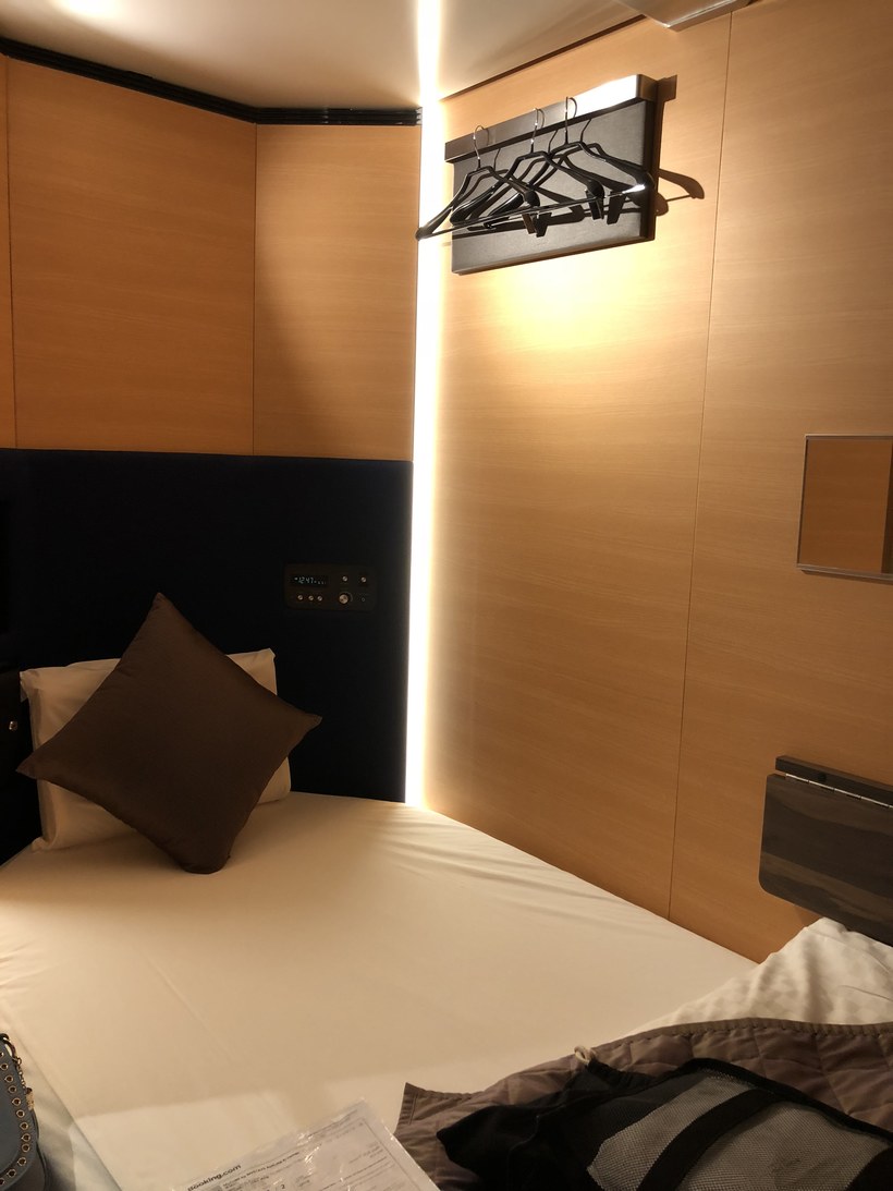 Про отель. В Токио очень распространены отели-капсулы. Ввиду нехватки жизненного пространства – это настоящая находка. Есть совсем дешёвые отели, где капсулы напоминают аппараты МРТ, а есть такие, где капсула скорее похожа на купе в поезде, причем без верхней полки. В таком я и жила, и скажу вам, что мне очень понравилось. Большой плюс таких отелей в том, что мужчины и женщины располагаются в отдельных помещениях. В моем отеле, так вообще на разных этажах. Капсула невероятно удобная, все – начиная от матраса, заканчивая постельным бельем – хорошего качества, вообще не придерешься. Сам ”номер” напичкан электроникой. И даже маленький сейф имеется у изголовья. Так комфортно, что в первый же день в стране восходящего солнца я проспала завтрак. Ванная, душ, туалетная комната – все сделано на уровне, в ванной представлены в виде пробников различные косметические средства, поэтому если вы едете в хороший отель, то с собой в Токио из уходовых средств можно ничего не брать.