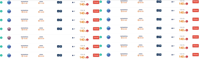 Ниже приведена информация о том, сколько часов вам потребуется, чтобы добраться от Стамбула до Коньи, а также приведена примерная стоимость проезда (средняя цена билета) на том или ином виде транспорта.