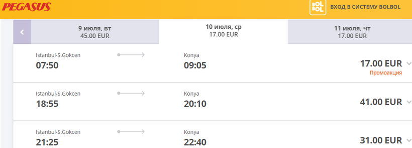 Компания Pegasus совершает рейсы из аэропорта Стамбул имени Сабихи Гёкчен 2–3 раза в сутки.
