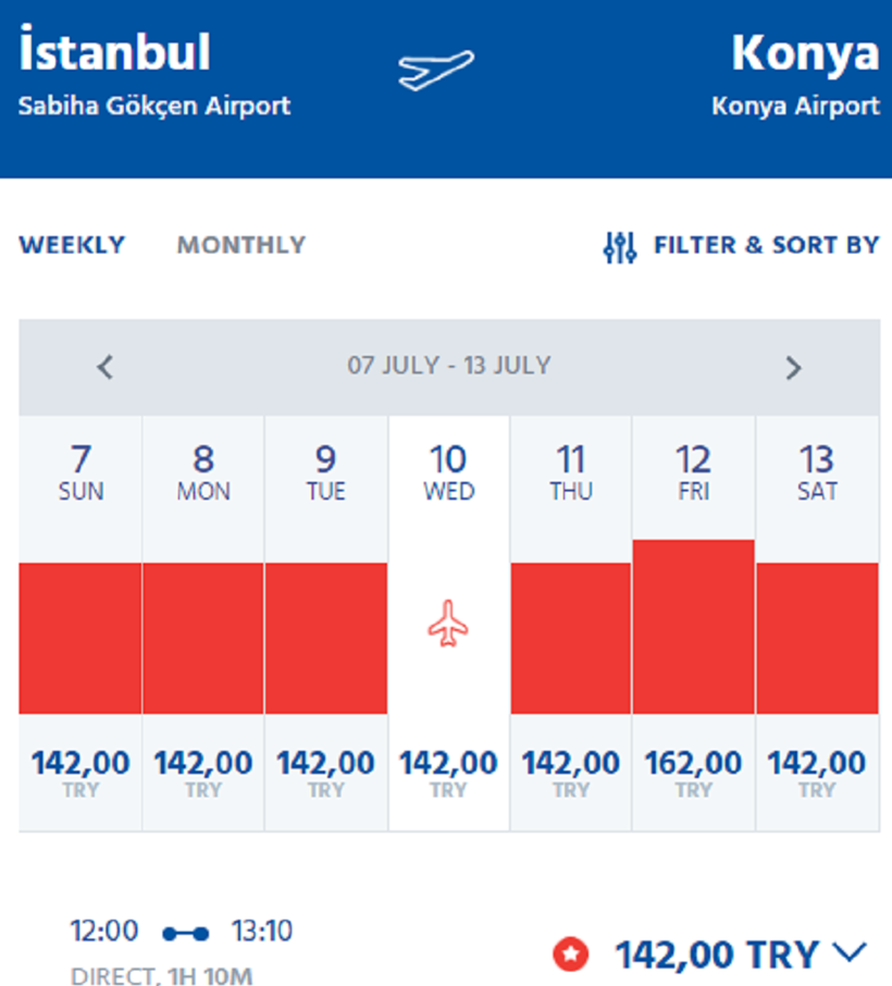 А самолеты Anadolujet вылетают из аэропорта Стамбул имени Сабихи Гёкчен ежедневно в 11:45 или 12:00.