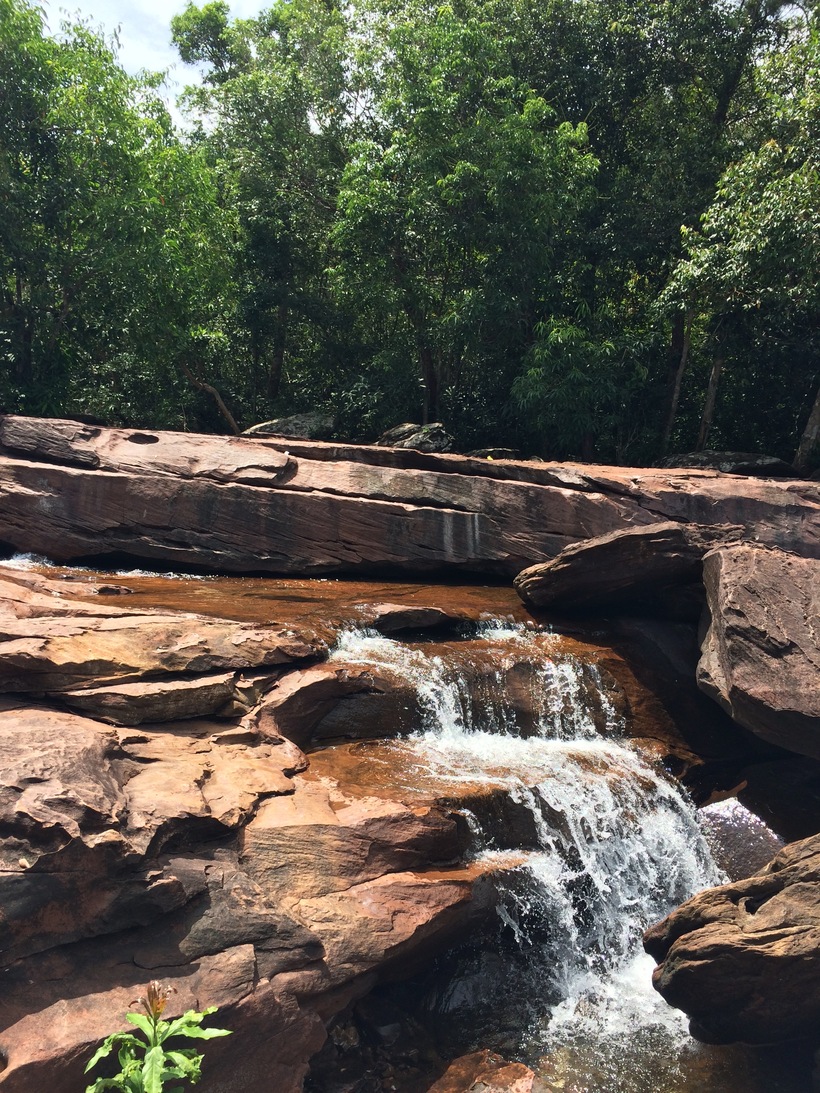 - В заповеднике есть несколько водопадов. И в сезон дождей или после него - они выглядят симпатично. Высоких гор на острове нет, поэтому водопад представляет собой каскад. Но я попала на остров в сухой сезон - доехав до места я столкнулась с тоненьким потоком воды и разочаровалась - помимо дикой нетронутой природы в окружении водопада находилось огромное количество мусора, пластика и жестяных пивных банок. Да, Азия не отличается чистоплотностью, но в тот момент это было слишком - ну очень грязно! Мне пришлось идти вдоль потока сквозь лес прилично долго, чтоб найти места без мусора. Я их нашла, но оно того не стоит. Мне хочется верить, что в сезон здесь все-таки прибирают и наводят красоту.
