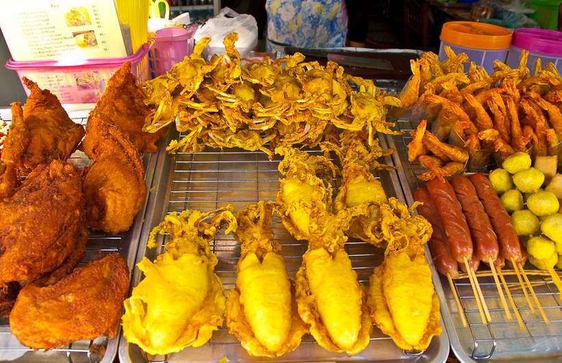 Любая еда у тайцев очень острая, продавцу нужно обязательно говорить "no spicy". Цены демократичные, например, рис с креветками, в среднем, стоит 60 бат.