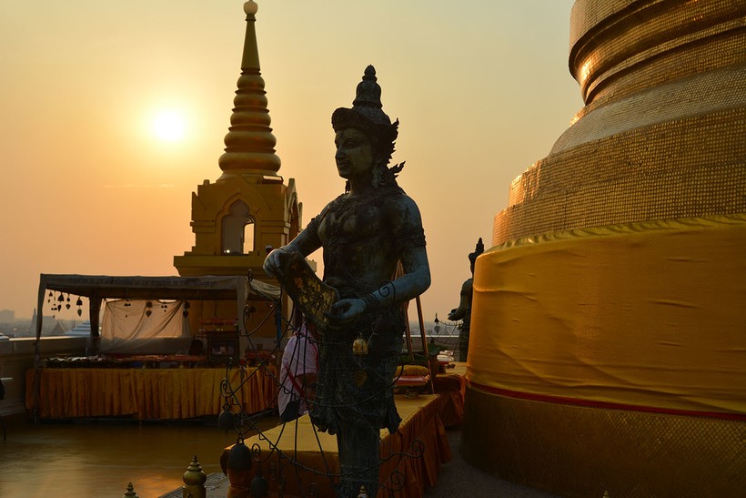 Храм Золотой горы находится недалеко от туристической зоны, так что можно даже дойти пешком. Храм очень красивый, уютный, здесь мало людей и можно с комфортом прогуляться по территории комплекса. Лучше приходить ближе к закрытию, тогда сможете полюбоваться закатом и панорамой города.