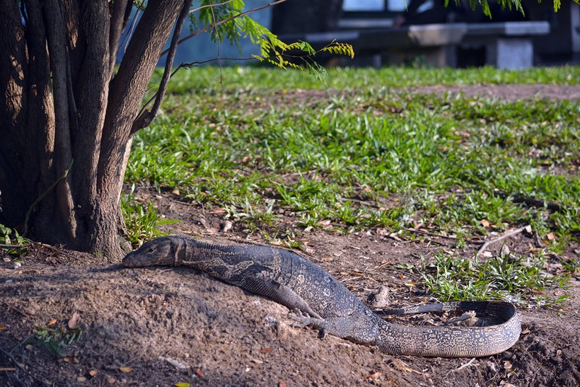 Но фишка парка не в этом. В парк стоит прийти, чтобы увидеть варанов, и не в клетке, а в естественной среде обитания. Они плавают в озере, выползают погреться на солнышке на дорожки. Будучи в парке Люмпини я устроила за ними целую фотоохоту.